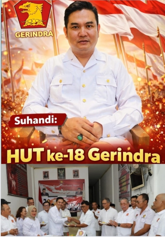 Anggota DPRD Kota Singkawang, Suhandi menyampaikan ucapan selamat Hari Ulang Tahun (HUT) ke-18 Partai Gerindra dengan mengusung tema “Kompak, Bergerak, Berdampak.”